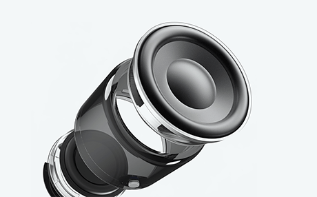 振動で低音を増幅し、サイズを超えた迫力あるサウンドを実現。